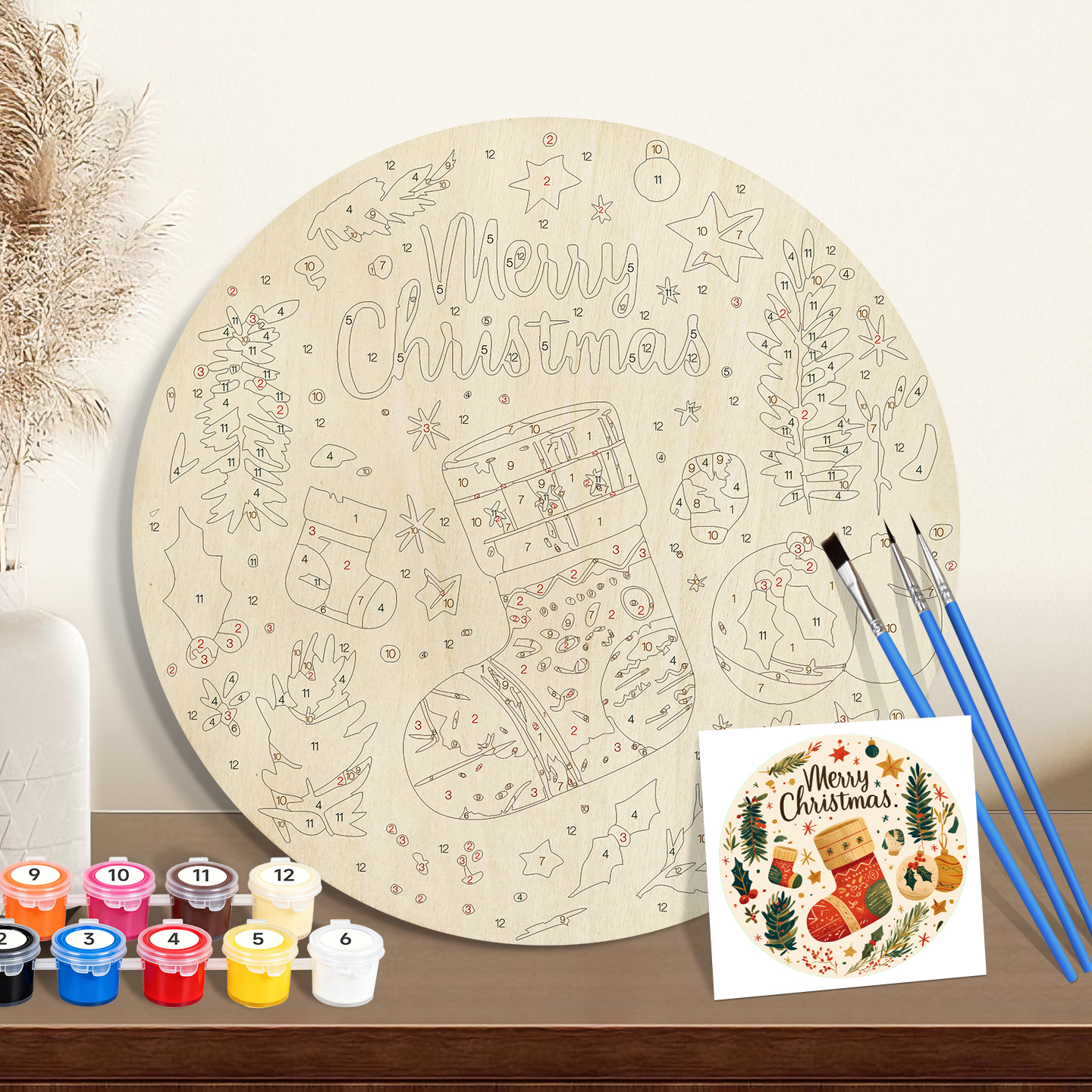 20cm Circular Wooden Painting by Numbers – 5mm Wood Board with 3 Brushes & 12 Paints | ORFON Custom DIY Art Kit for Adults & Kids | Dropshipping & Wholesale Available (Copy)