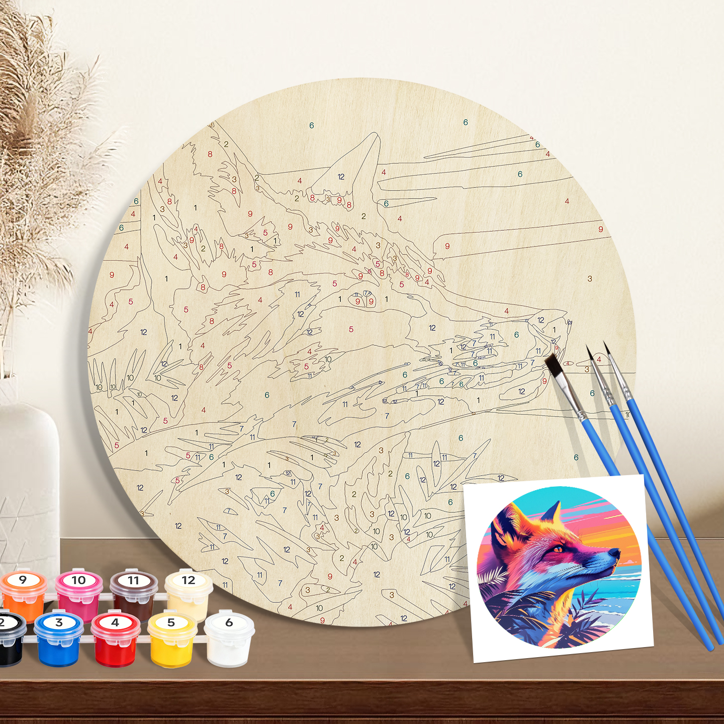 20cm Paint by numbers on Wood Slice.A global wholesaler of mathematical oil paintings, with a professional team, highly favored by people in the United States and Europe. – 5mm Wood Board with 3 Brushes & 12 Paints | ORFON Custom DIY Art Kit for Adults & Kids | Dropshipping & Wholesale Available