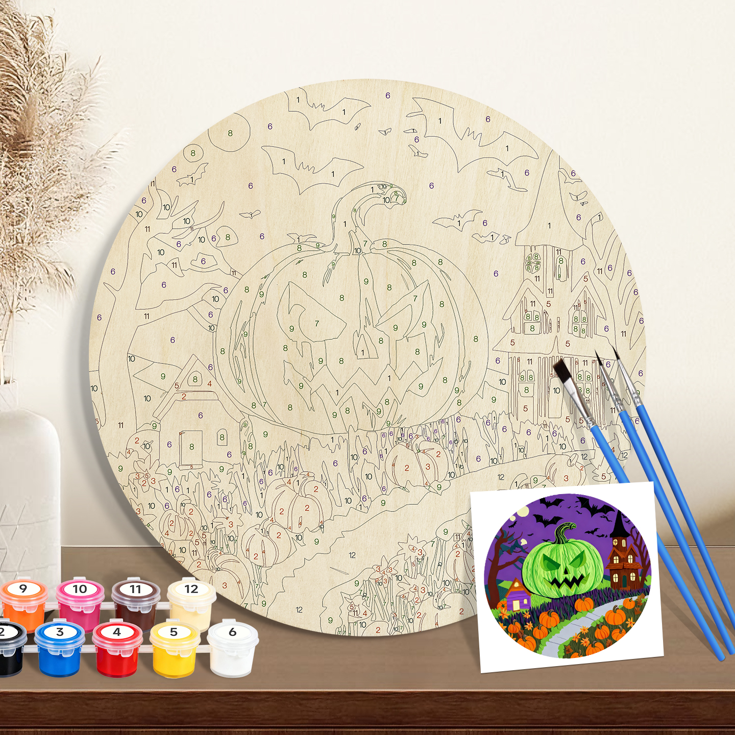 20cm Paint by numbers on Wood Slice.Annual best-selling product, a favorite among wholesalers in the US and Europe.- 5mm Wood Board with 3 Brushes & 12 Paints | ORFON Custom DIY Art Kit for Adults & Kids | Dropshipping & Wholesale Available