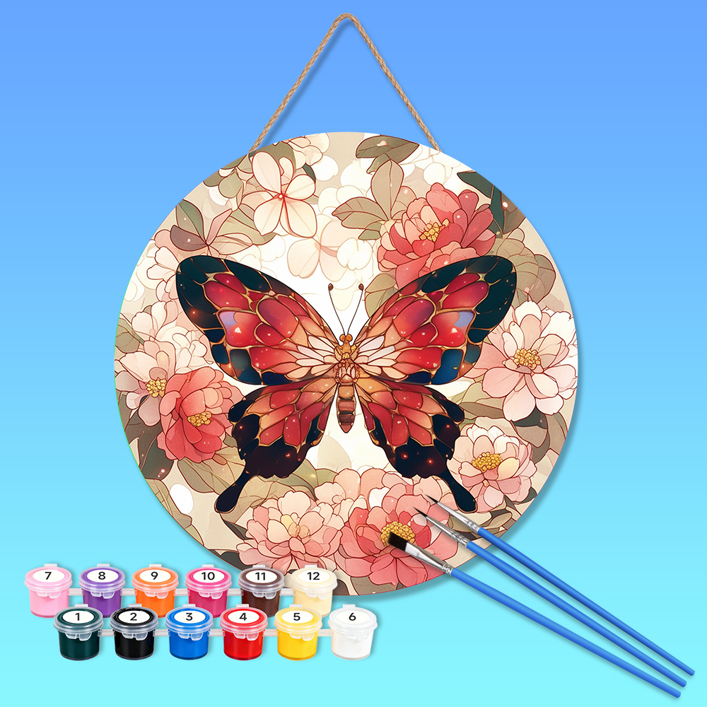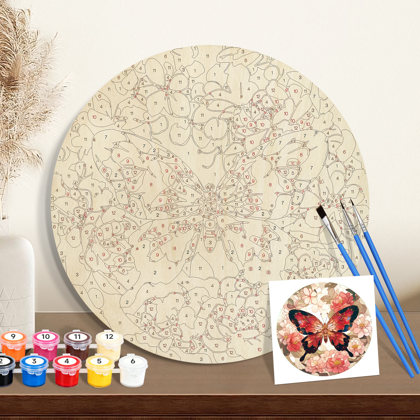 20cm Paint by numbers on Wood Slice. Exclusive design, top-selling new product in the US, Europe, and France markets. – 5mm Wood Board with 3 Brushes & 12 Paints | ORFON Custom DIY Art Kit for Adults & Kids | Dropshipping & Wholesale Available