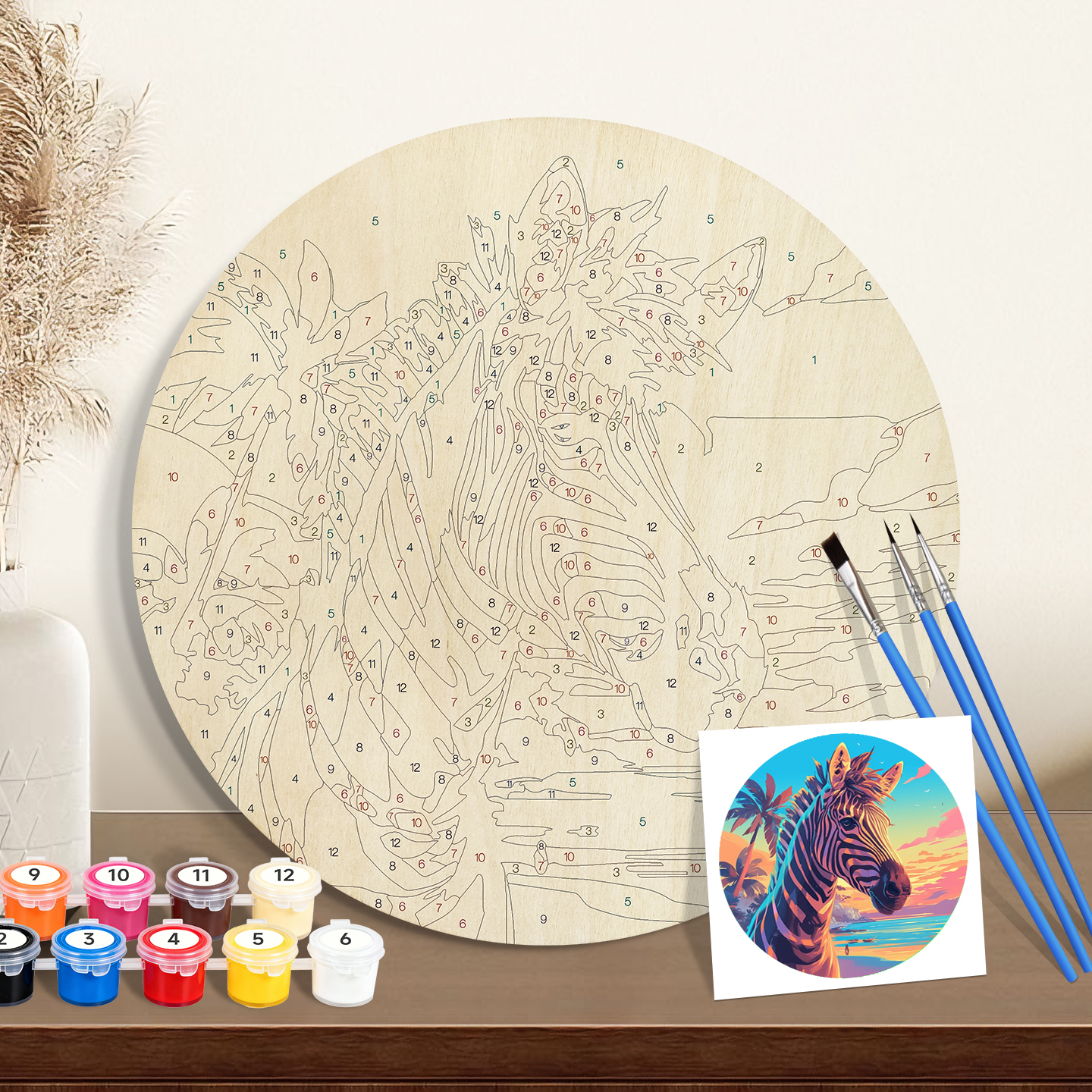 20cm Paint by numbers on Wood Slice. Global Wholesale Supplier of Painting by Numbers Kits | Bulk OEM for USA, EU, CA, AU, KR- 5mm Wood Board with 3 Brushes & 12 Paints | ORFON Custom DIY Art Kit for Adults & Kids | Dropshipping & Wholesale Available