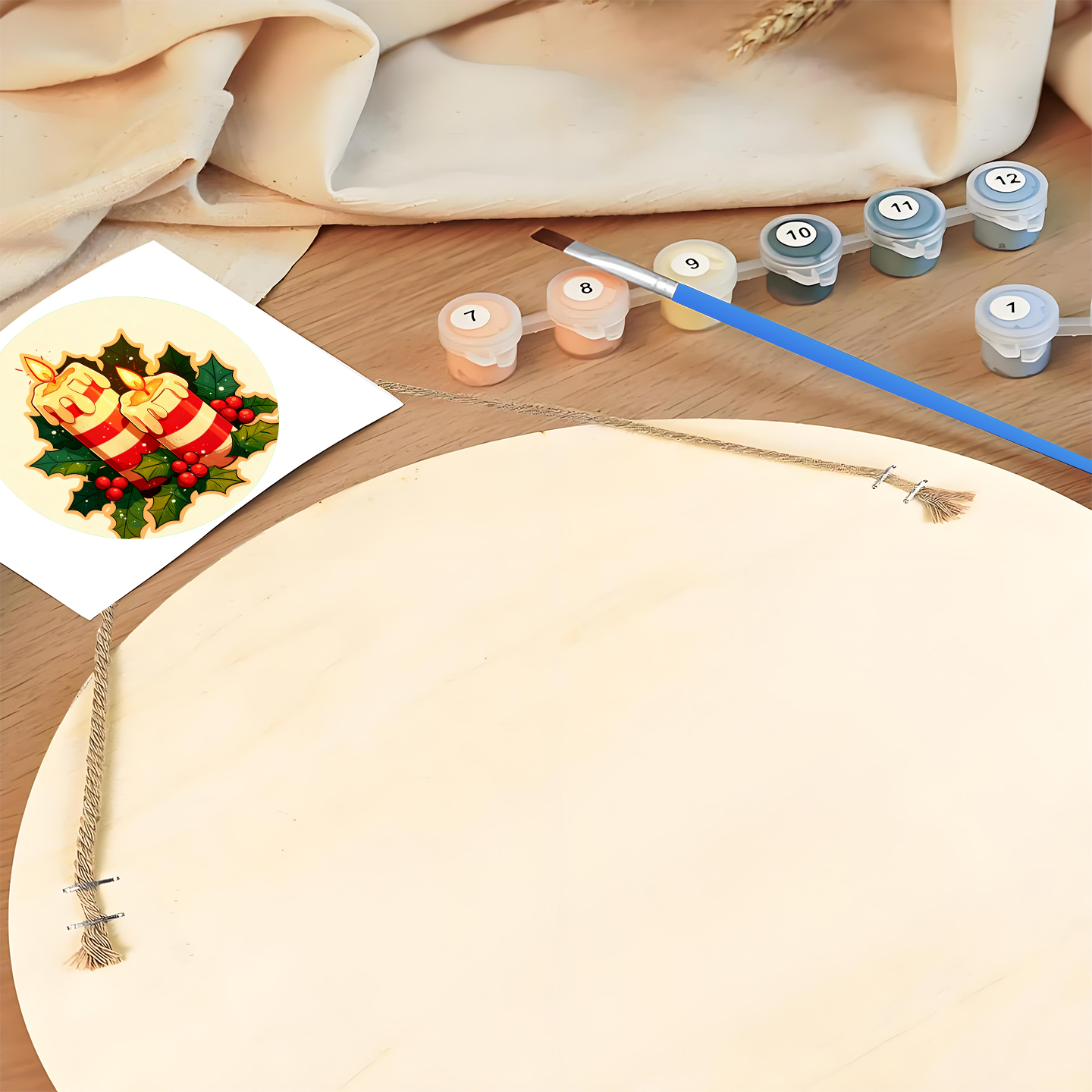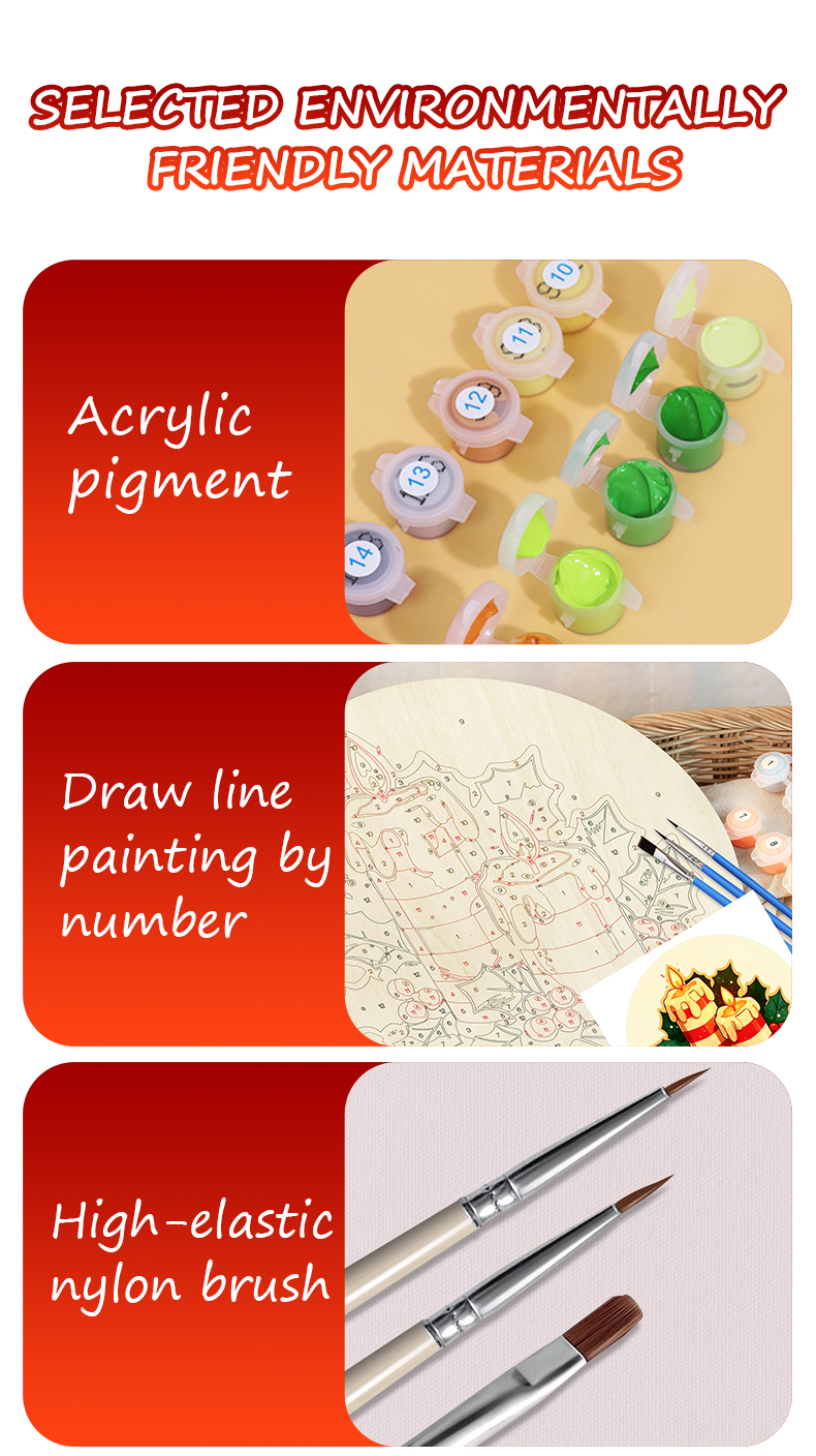 20cm Paint by numbers on Wood Slice Global Wholesale Supplier of Painting by Numbers Kits | Bulk OEM for USA, EU, CA, AU, KR – 5mm Wood Board with 3 Brushes & 12 Paints | ORFON Custom DIY Art Kit for Adults & Kids | Dropshipping & Wholesale Available
