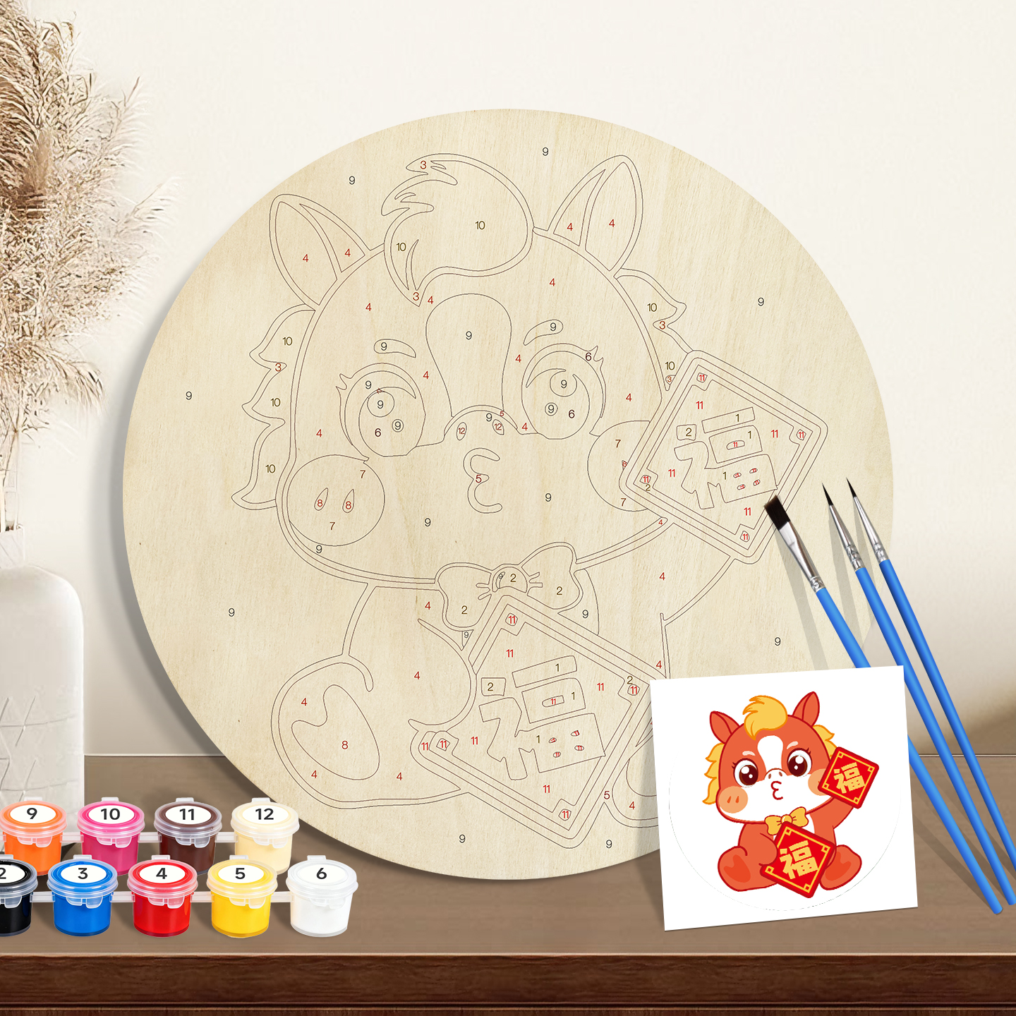 20cm Paint by numbers on Wood Slice. Global Wholesale Supplier of Painting by Numbers Kits | Bulk OEM for USA, EU, CA, AU, KR- 5mm Wood Board with 3 Brushes & 12 Paints | ORFON Custom DIY Art Kit for Adults & Kids | Dropshipping & Wholesale Available