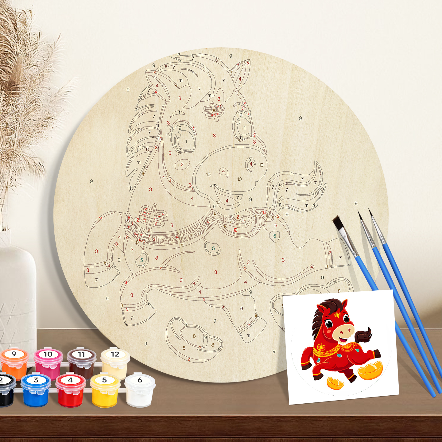 20cm Paint by numbers on Wood Slice Global Wholesale Supplier of Painting by Numbers Kits | Bulk OEM for USA, EU, CA, AU, KR – 5mm Wood Board with 3 Brushes & 12 Paints | ORFON Custom DIY Art Kit for Adults & Kids | Dropshipping & Wholesale Available