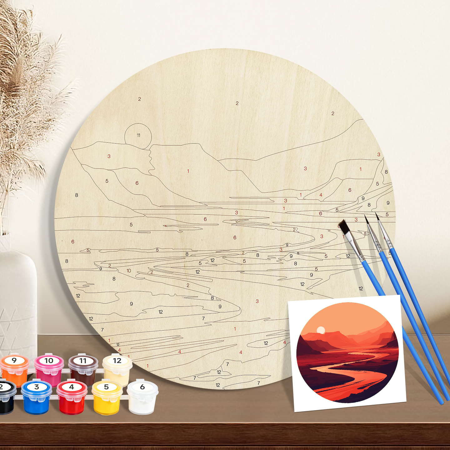 20cm Paint by numbers on Wood. SliceGlobal Wholesale Supplier of Painting by Numbers Kits | Bulk OEM for USA, EU, CA, AU, KR – 5mm Wood Board with 3 Brushes & 12 Paints | ORFON Custom DIY Art Kit for Adults & Kids | Dropshipping & Wholesale Available