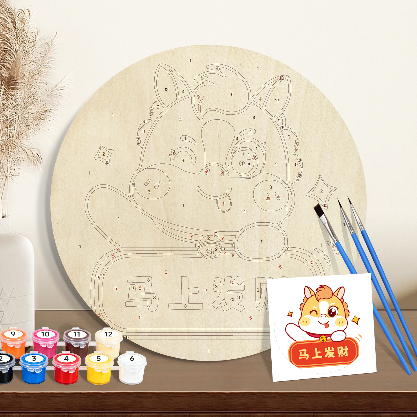 20cmPaint by numbers on Wood Slice. Get rich immediately- 5mm Wood Board with 3 Brushes & 12 Paints | ORFON Custom DIY Art Kit for Adults & Kids | Dropshipping & Wholesale Available