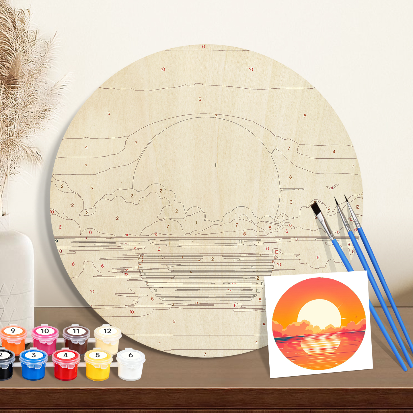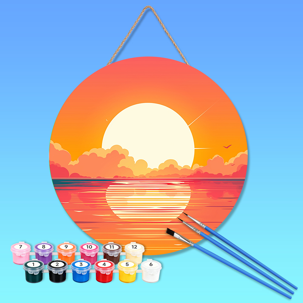 20cmPaint by numbers on Wood Slice. Global Wholesale Supplier of Painting by Numbers Kits | Bulk OEM for USA, EU, CA, AU, KR – 5mm Wood Board with 3 Brushes & 12 Paints | ORFON Custom DIY Art Kit for Adults & Kids | Dropshipping & Wholesale Available