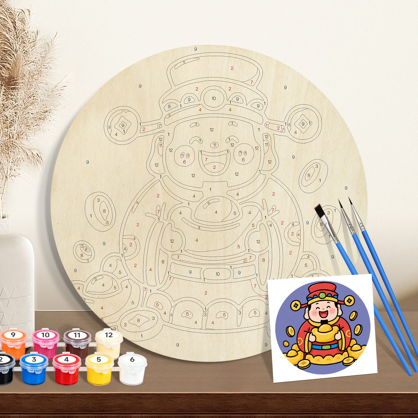 20cmPaint by numbers on Wood Slice. Serving wholesale buyers in the United States, Italy, Canada, and South Korea. – 5mm Wood Board with 3 Brushes & 12 Paints | ORFON Custom DIY Art Kit for Adults & Kids | Dropshipping & Wholesale Available