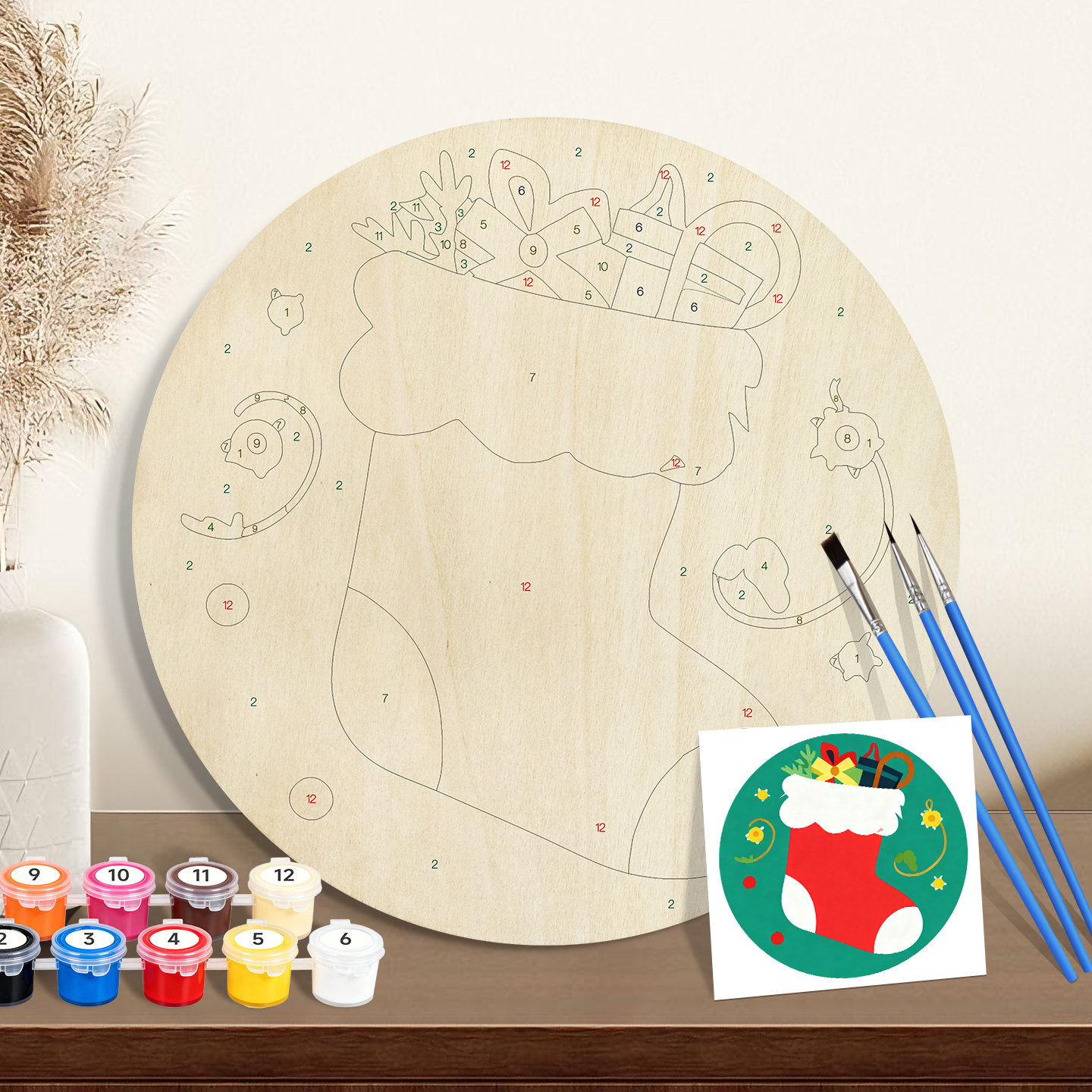 Bulk Orders for North America & European Distributors. 20cm Paint by numbers on Wood Slice. – 5mm Wood Board with 3 Brushes & 12 Paints | ORFON Custom DIY Art Kit for Adults & Kids | Dropshipping & Wholesale Available