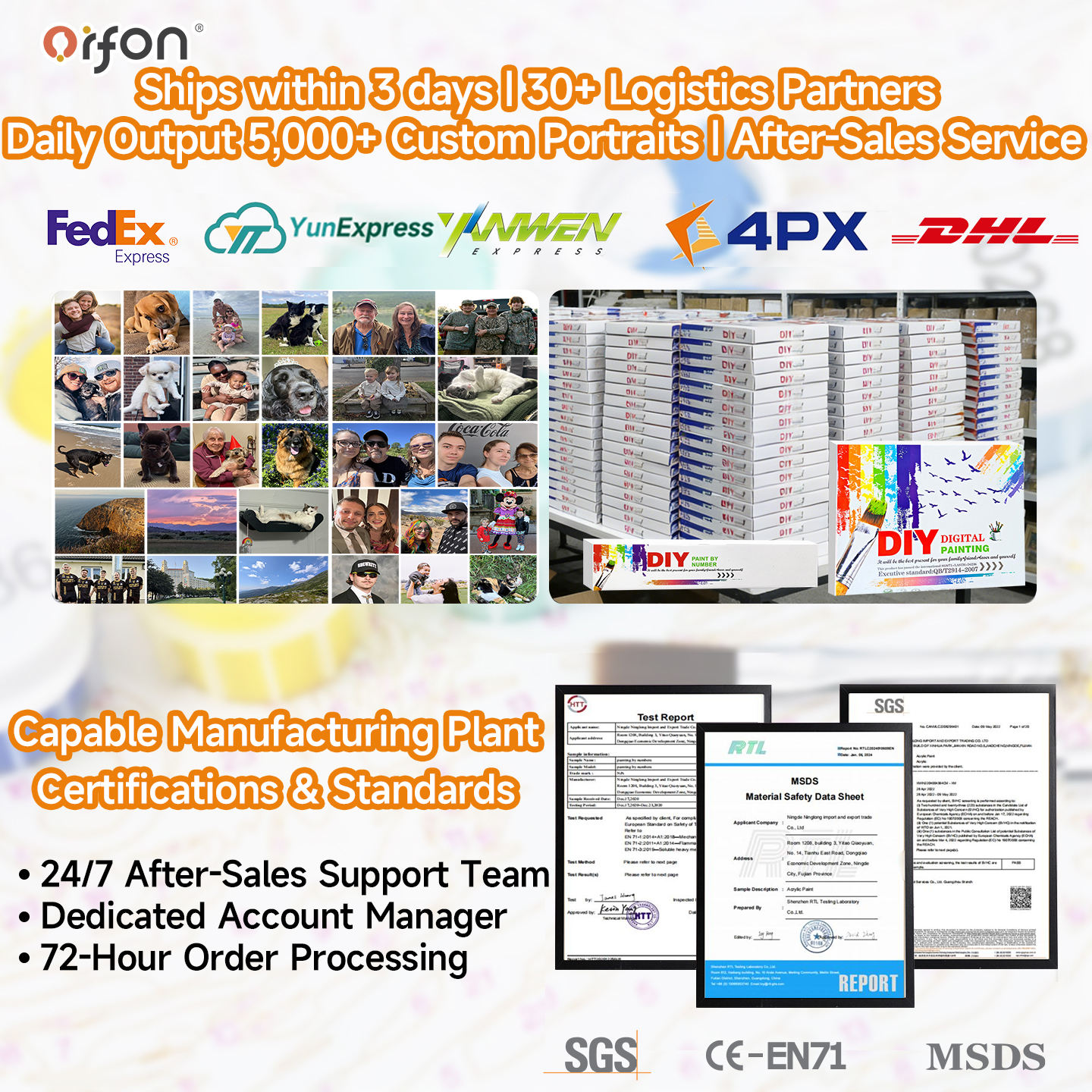 We are a premier painting by numbers supplier and full-solution provider. We specialize in empowering Shopify sellers with reliable dropshipping and after-sales services. Our core expertise includes personal photo customization, free canvas logo printing, and custom-branded packaging to elevate your brand.