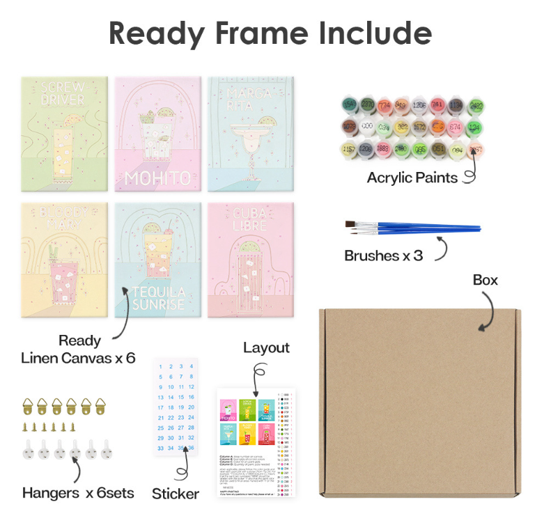 and a reference guide—everything needed to complete the painting.