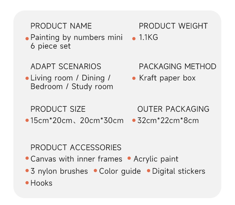 Orfon Mini 6-Panel DIY Painting by Numbers Kit | Custom Personalized Art | Bulk Wholesale & Global Dropshipping Available for USA, UK, FR, DE, AU, CA